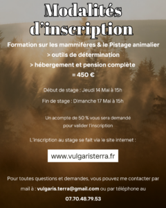 Plus d'informations : https://vulgaristerra.fr/balades/stage-de-4-jours-de-pistage-animalier-en-aubrac/